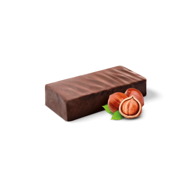 Miscela di proteine (proteina di SOIA testurizzata (proteina di SOIA, amido di tapioca), proteine del LATTE, proteina di SOIA (emulsionante: lecitine (SOIA)), gelatina idrolizzata), agente di carica: polidestrosio, oligofruttosio (estratto di radice di cicoria), oli vegetali (olio di palmisto certificato RSPO, olio di palma certificato RSPO, olio di karitè, olio di girasole), umidificante: glicerolo, cacao in polvere (4,4%), NOCCIOLE (2,2%), aromi, burro di cacao, emulsionante: lecitine, sale, edulcoranti: sucralosio, acesulfame K.