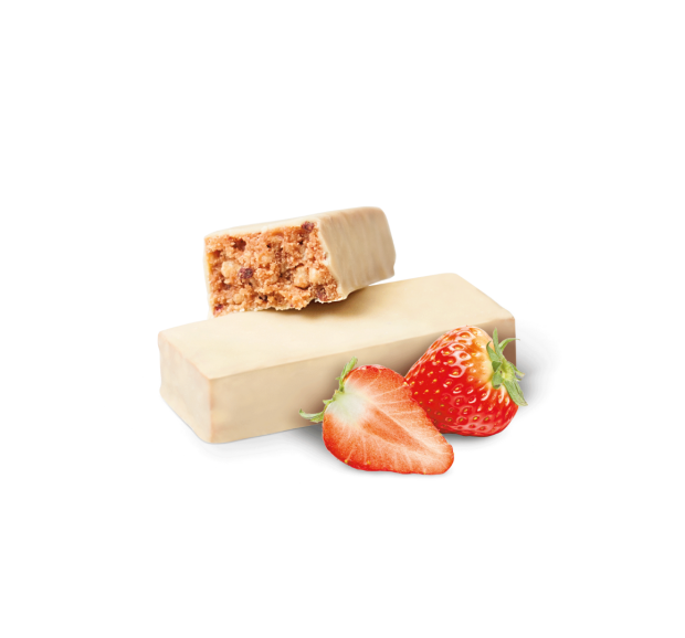 Miscela di proteine (proteina di SOIA (emulsionante: lecitine (contiene SOIA), proteina di SOIA testurizzata, (proteina di SOIA, amido di tapioca), proteine del LATTE, gelatina idrolizzata), oligofruttosio (estratto di radice di cicoria), agente di carica: polidestrosio, oli vegetali (olio di palmisto, olio di coco, olio di palma, olio di karitè, olio di semi di girasole), umidificante: glicerolo, aromi (contiene SOIA), emulsionanti: lecitine, mono- e digliceridi degli acidi grassi; crispies di barbabietola soffiata (farina di riso, amido di riso, olio di semi di girasole, barbabietola disidratata), yogurt (LATTE) in polvere, LATTE scremato in polvere, acidificante: acido citrico, concentrato di ravanello, mela e ribes nero, sale, lamponi disidratati, succo di mirtillo rosso concentrato in polvere, fragole disidratate, edulcoranti: sucralosio, acesulfame K.