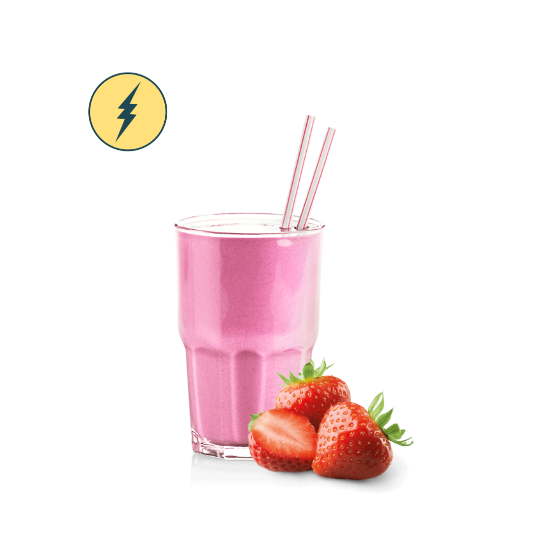 Preparato alimentare UHT a forma di bevanda al sapore di fragola, con edulcoranti. Alimento Fast.