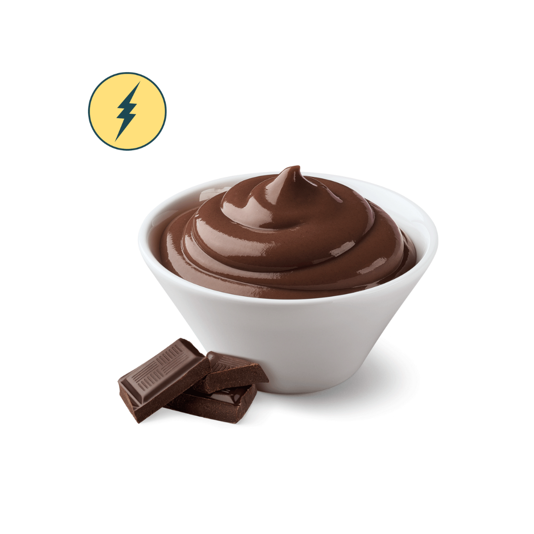 Dessert al cucchiaio al gusto di cioccolato, con edulcoranti. Alimento Fast.