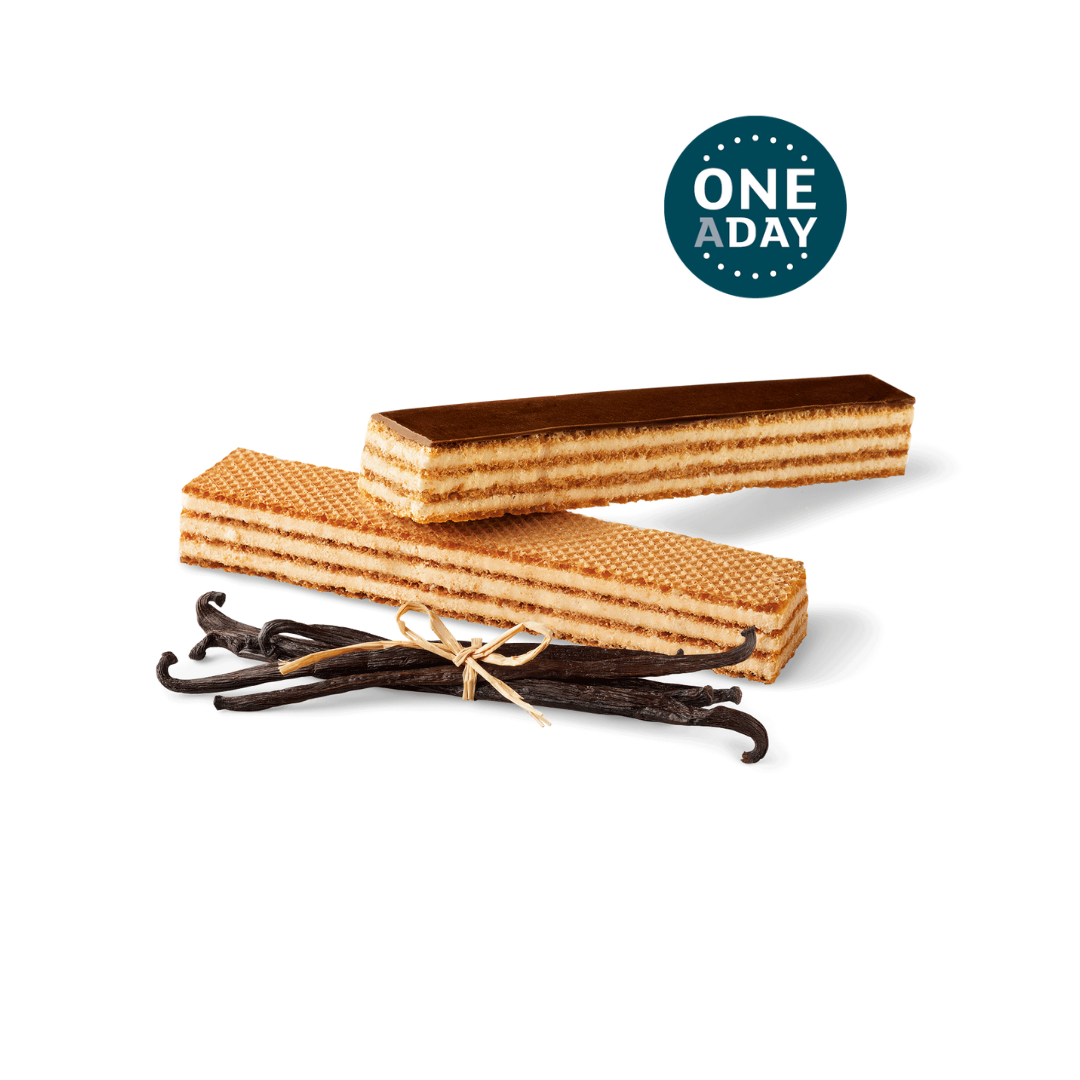 Proteine del LATTE, grasso vegetale non idrogenato: palma, collagene idrolizzato (bovino), inulina, farina di FRUMENTO, zucchero, copertura di cioccolato al latte (zucchero, burro di cacao, LATTE scremato in polvere, pasta di cacao, siero del LATTE, BURRO anidro, emulsionante: lecitina di SOIA, aroma naturale di vaniglia), burro di cacao, LATTE scremato in polvere, aroma vaniglia, aroma PANNA, emulsionanti: lecitina di SOIA, poliricinoleico di poliglicerolo; addensante: gomma di guar; agenti lievitanti: ammonio bicarbonato, sodio bicarbonato; edulcorante: sucralosio.