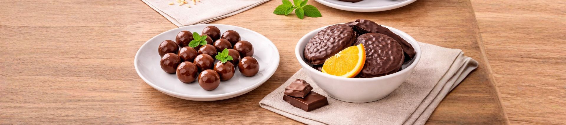Palline di soia ricoperte di cioccolato al latte, con edu...